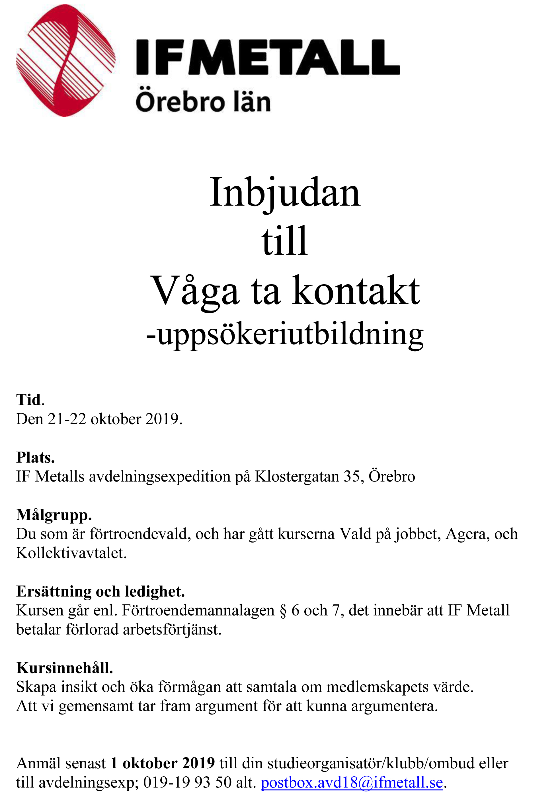 - Tid: 21 okt 2019, 08:00