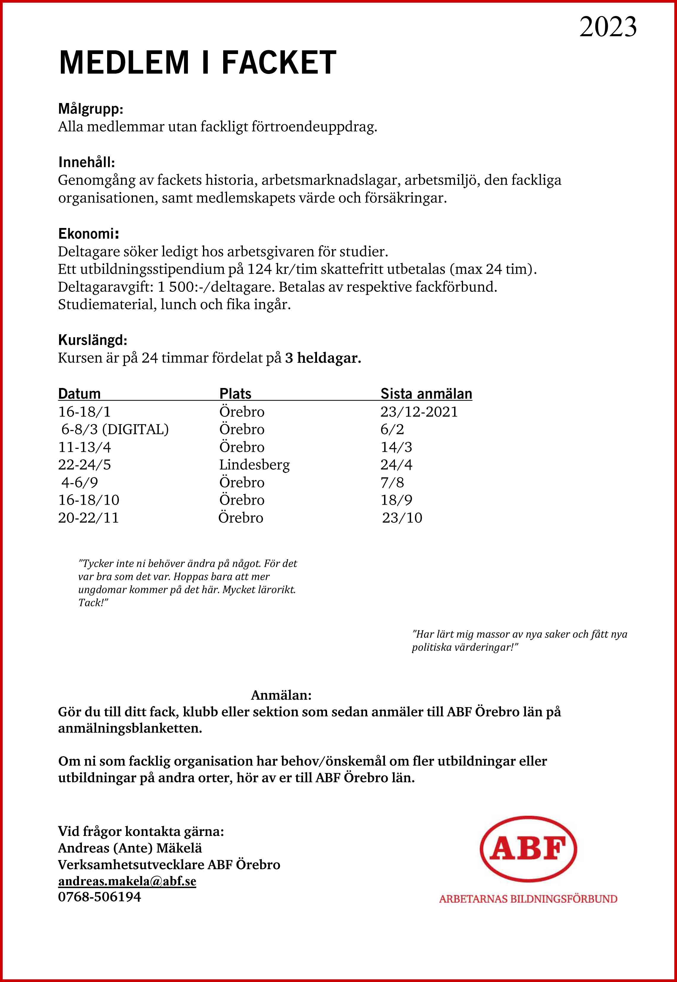 - Plats: ABF