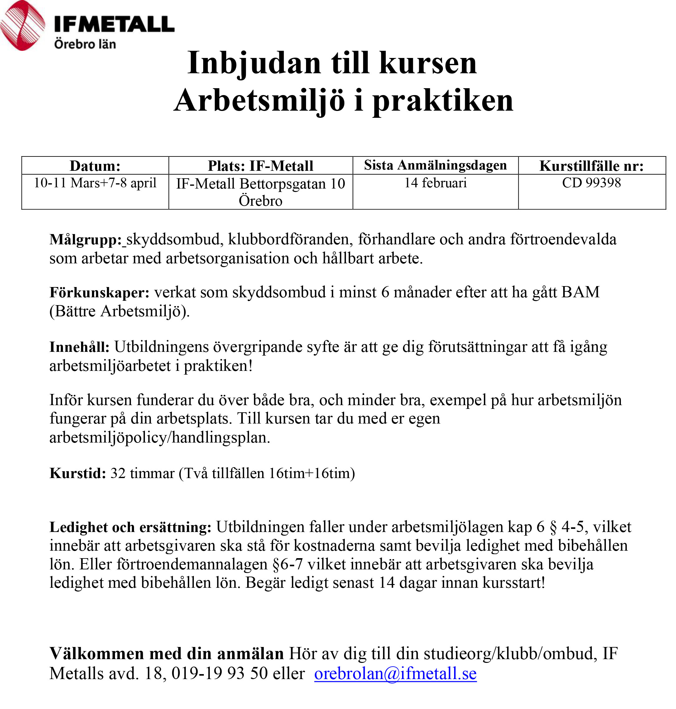 - Plats: IF Metall Örebro Avdelningsexpeditionen
