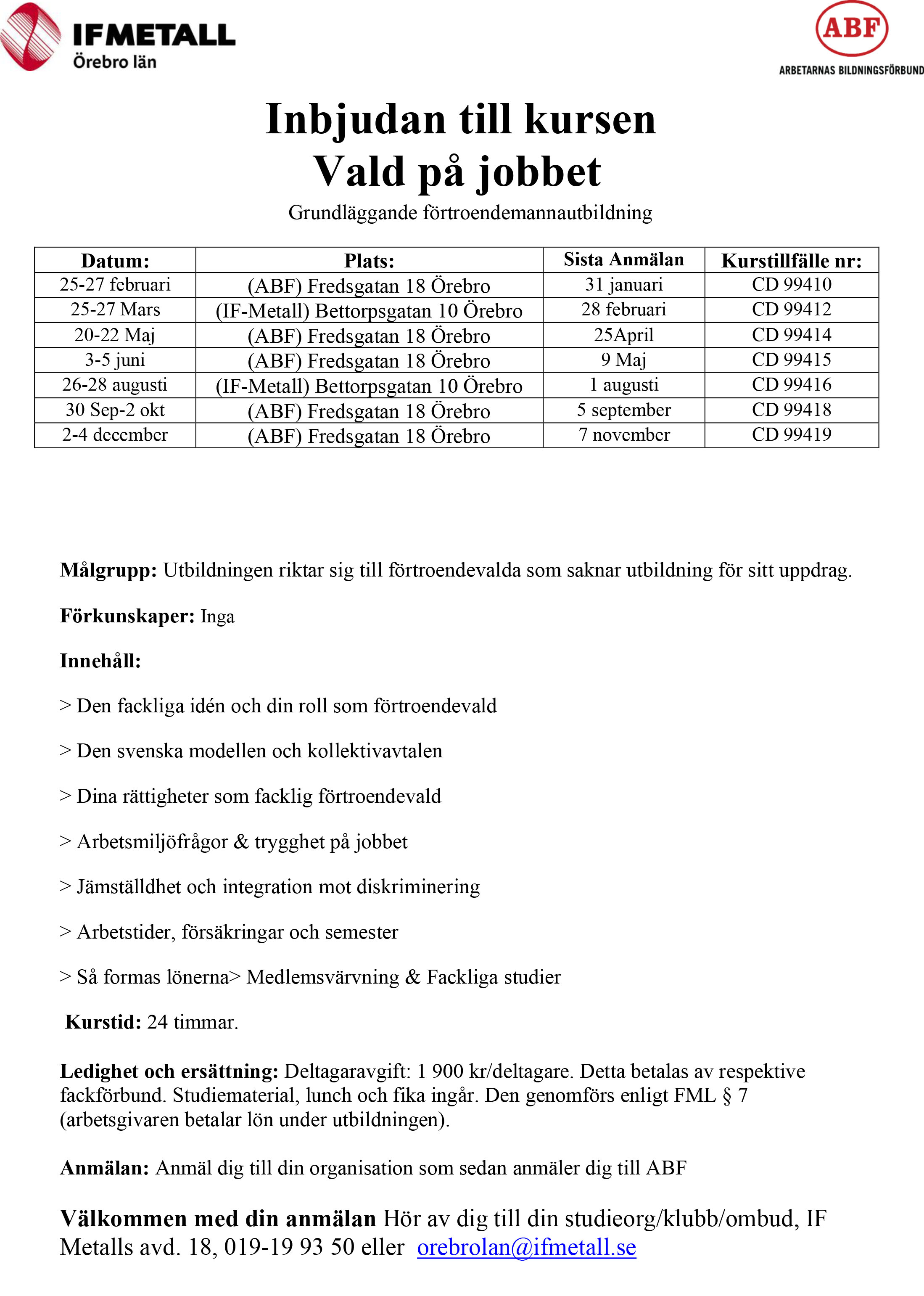 - Plats: IF Metall Örebro län Avdelningsexpeditionen