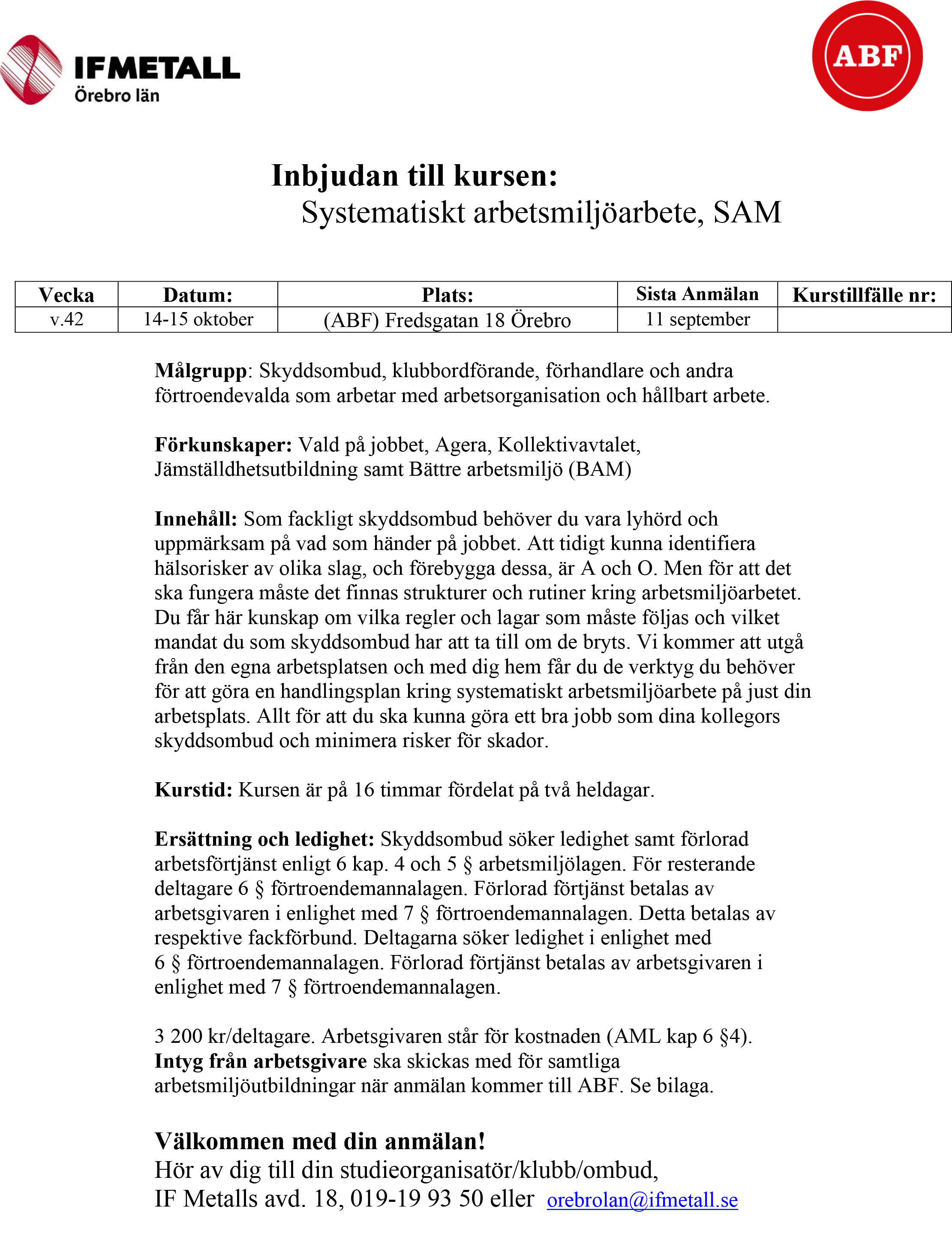 - Plats: ABF Örebro