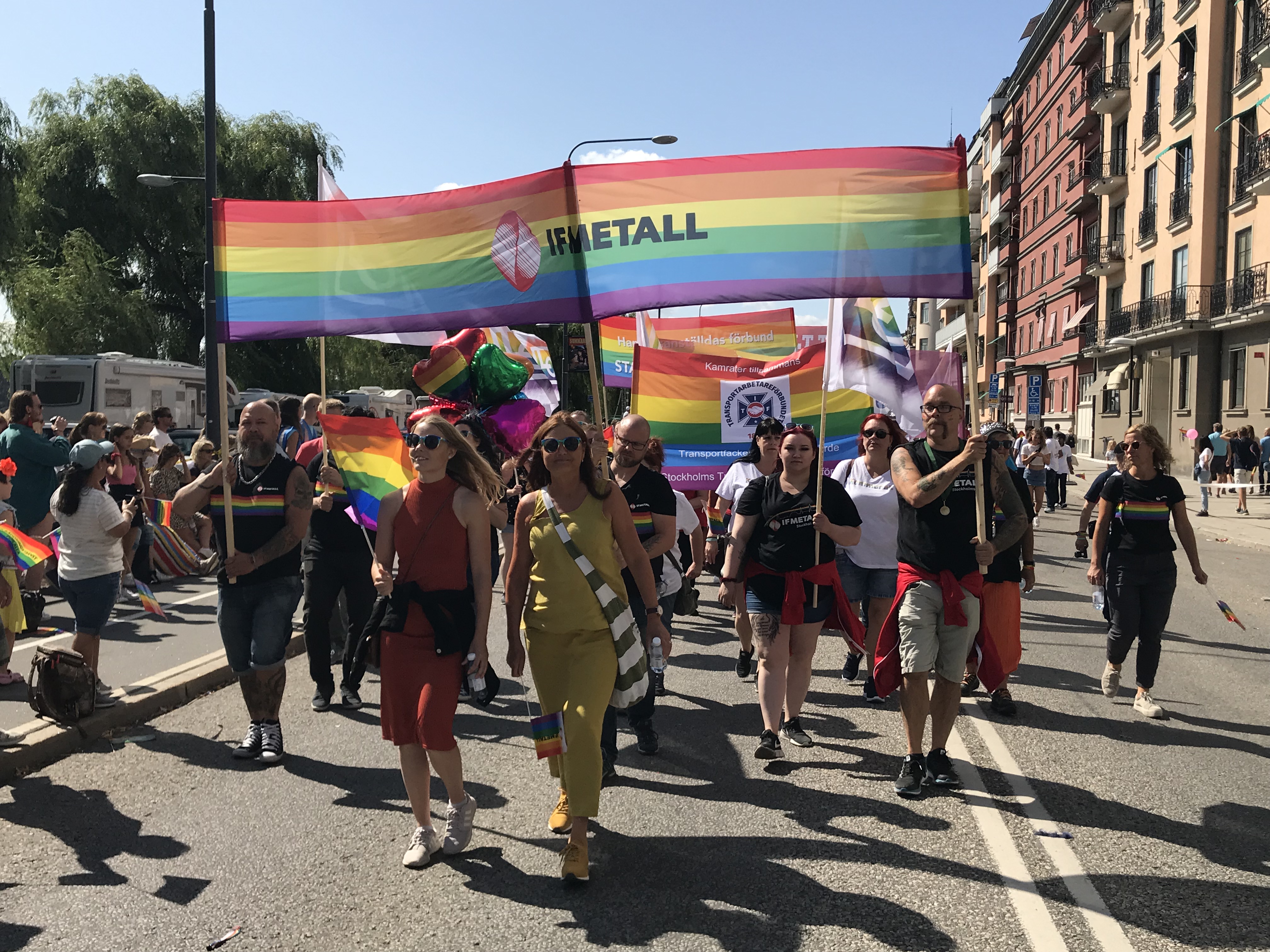 Aktiviteter ii Pride Park onsdag till lördag med LO-distriktet. Paraden på lördagen på Stockholms gator.