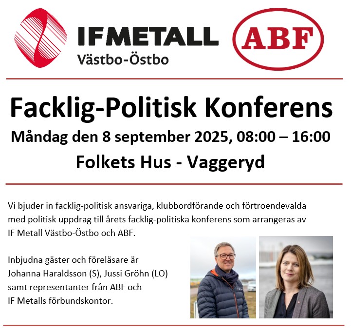 För mer information gällande konferensen var vänlig kontakta avdelningens facklig-politisk ansvariga Linda Roos Nykvist - linda.roos.nykvist@ifmetall.se