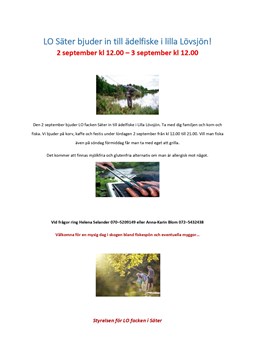 LO-facken i Säter bjuder in till ädelfiske i Lilla Lövsjön 2/9 kl 12:00 - 3/9 kl 12:00