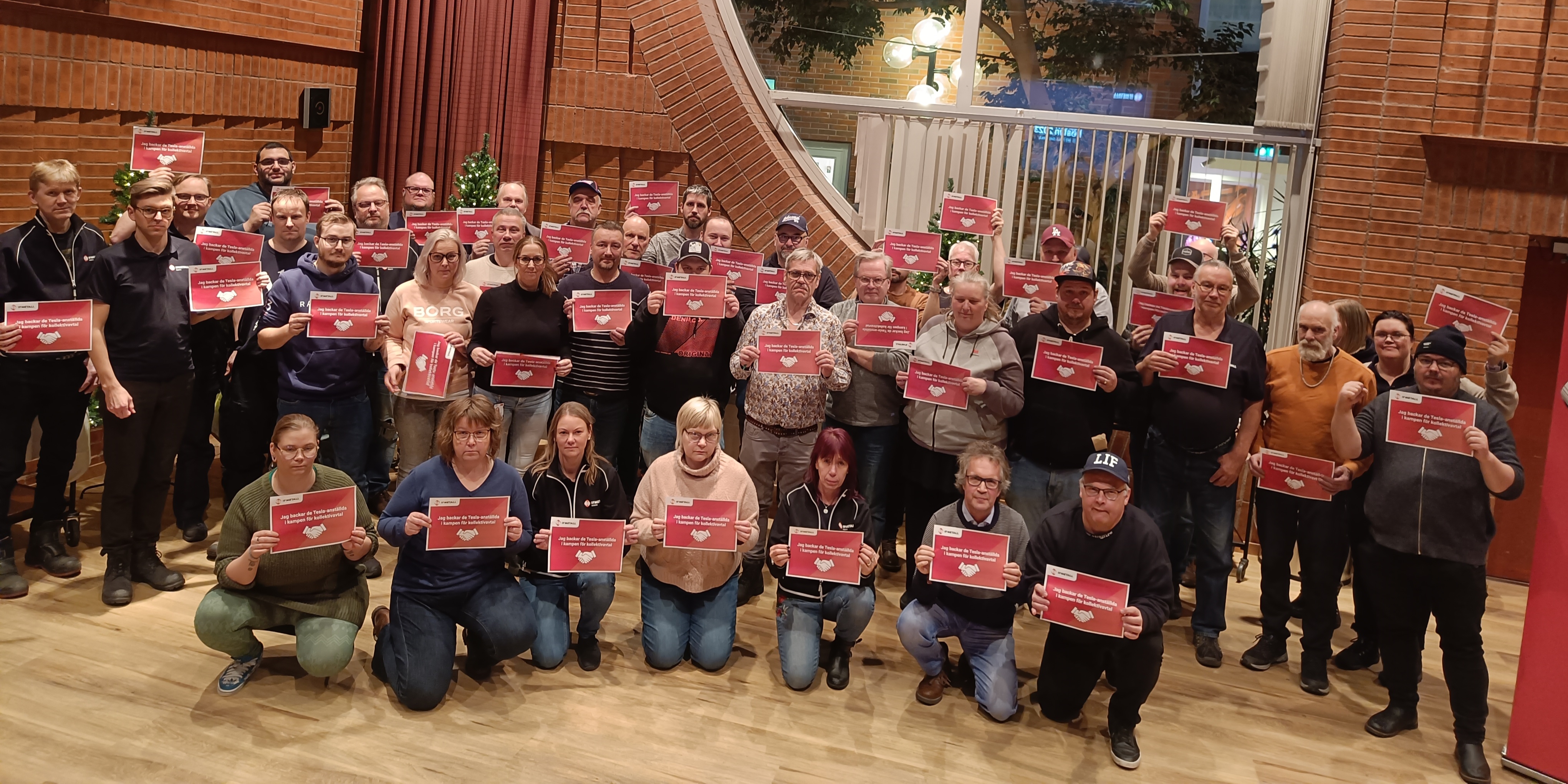 ”Den 23 November hade IF Metall Dalarna sitt höstmöte. Och vad passar inte bättre än att ta tillfället i akt och visa att IF Metall Dalarna backar Tesla-anställda i kampen om kollektivavtal! #IFMetall #kollektivavtal #vibackarteslaanställdaikampenomkollektivavtal”