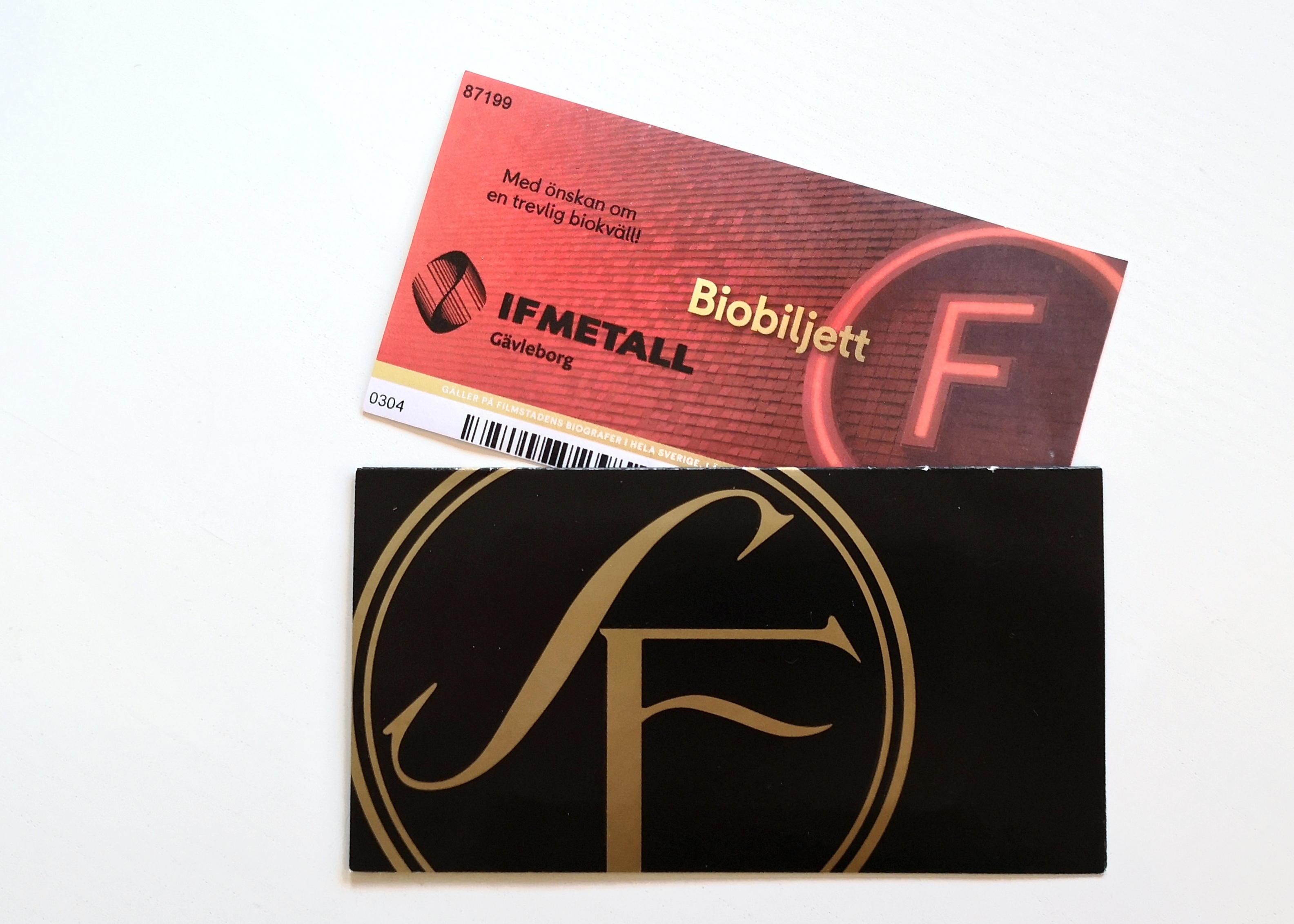 Som medlem har du möjlighet att köpa biobiljetter som gäller på SF biografer och Svenska Bios biografer till ett förmånligt pris.