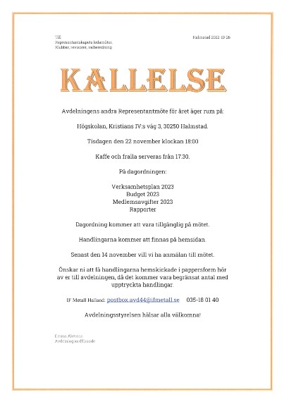Välkommen till avdelningens repskapsmöte den 22 november på Högskolan i Halmstad