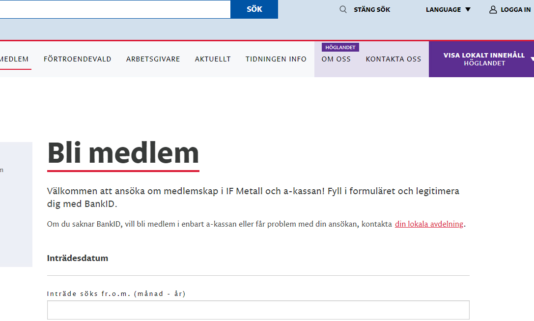 Nu finns samma funktion för inträdesansökan, den går att översätta till flera olika spåk genom att välja språk under menyn Language längst upp. Vi hoppas att detta ska underlätta för våra mångspråkiga arbetskollegor ute på arbetsplatserna.
