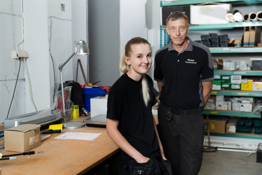 Maja Cederborg kom som praktikant när hon gick fordonsprogrammet, vilket hon avslutade med bra betyg och fick jobb i bemanningsbranschen. Just då fanns det inget ledigt på Småländska bil. Men Thomas Jansson hade Maja kvar i minnet som en duktig och bra tjej, så när det blev ett jobb ledigt på lagret fixade han så att hon kom tillbaka.