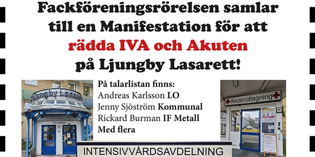 Fackföreningsrörelsen samlar till en Manifestation för att rädda IVA och Akuten på Ljungby Lasarett!