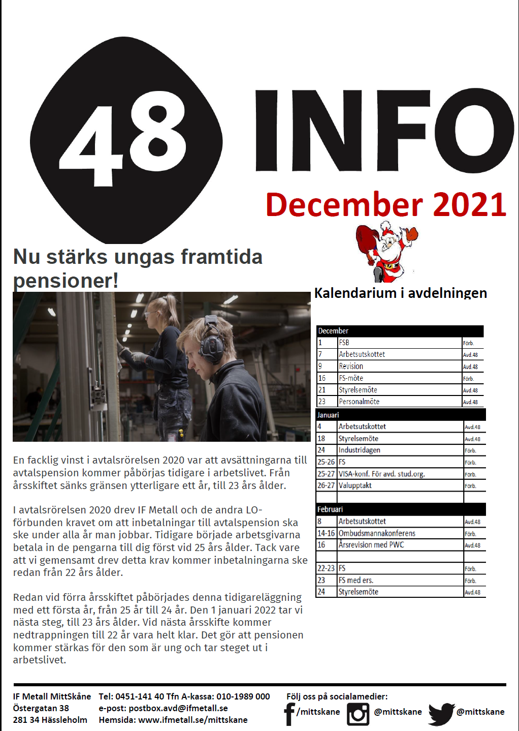 Så här i slutet av året så levererar vi årets sista Månadsinfo till dig från MittSkåne avdelningen.
