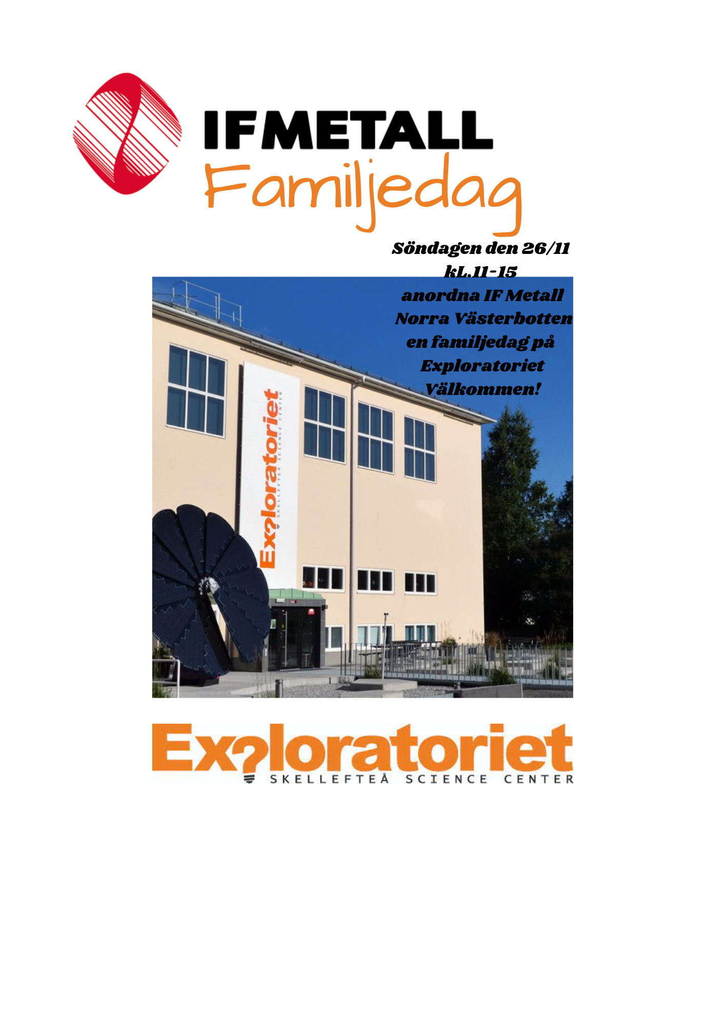 IF Metall Norra Västerbotten en familjedag på Exploratoriet på Nordanå.