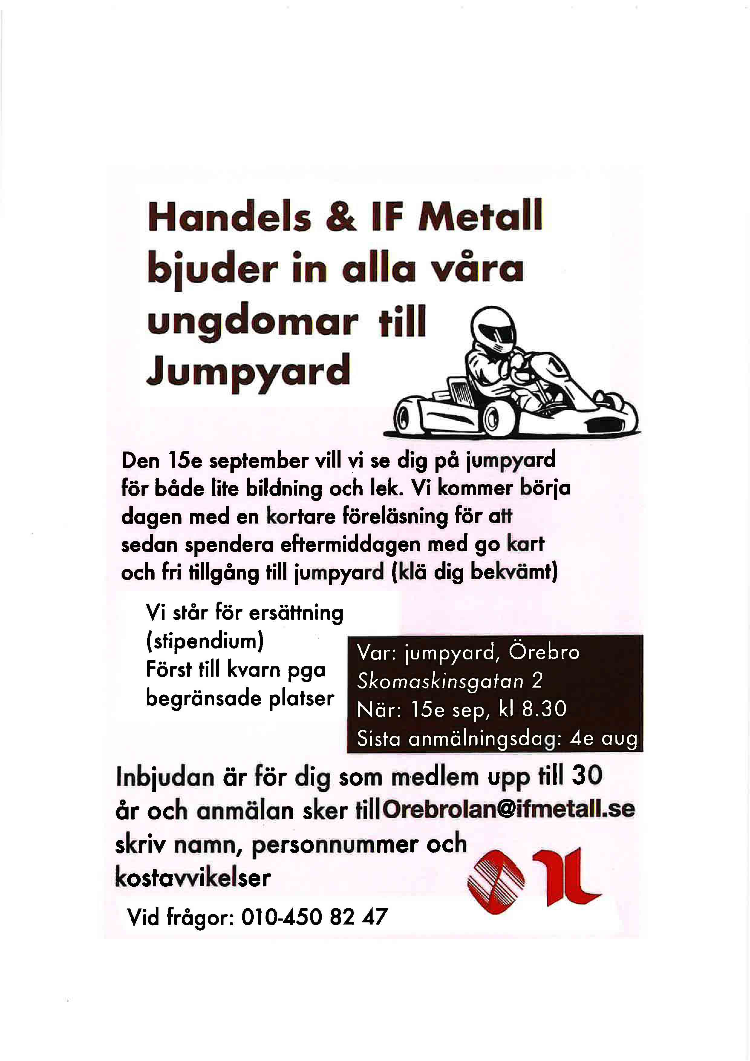 Handels och IF Metall Örebro län bjuder in alla våra ungdomar till Jumpyard