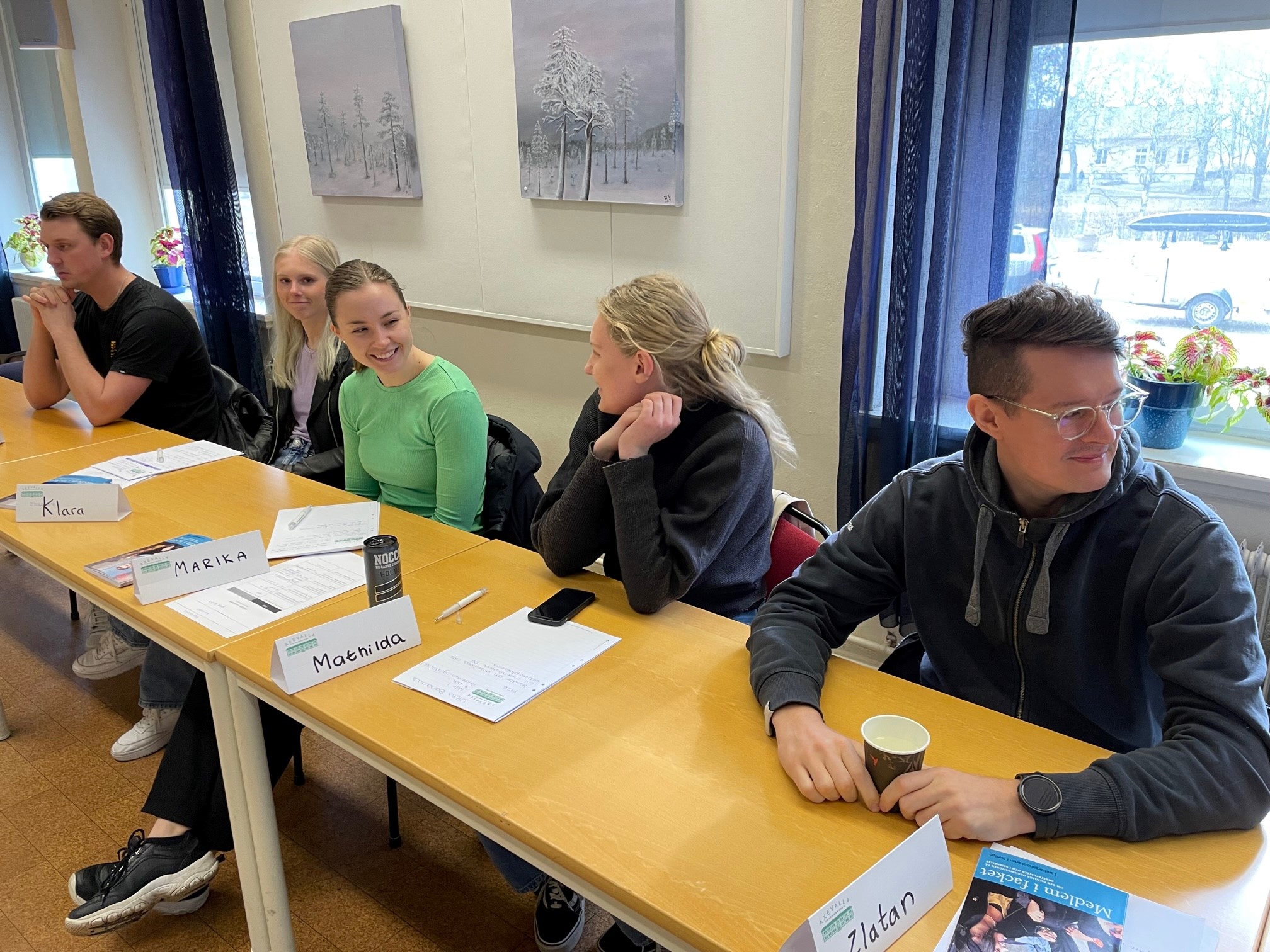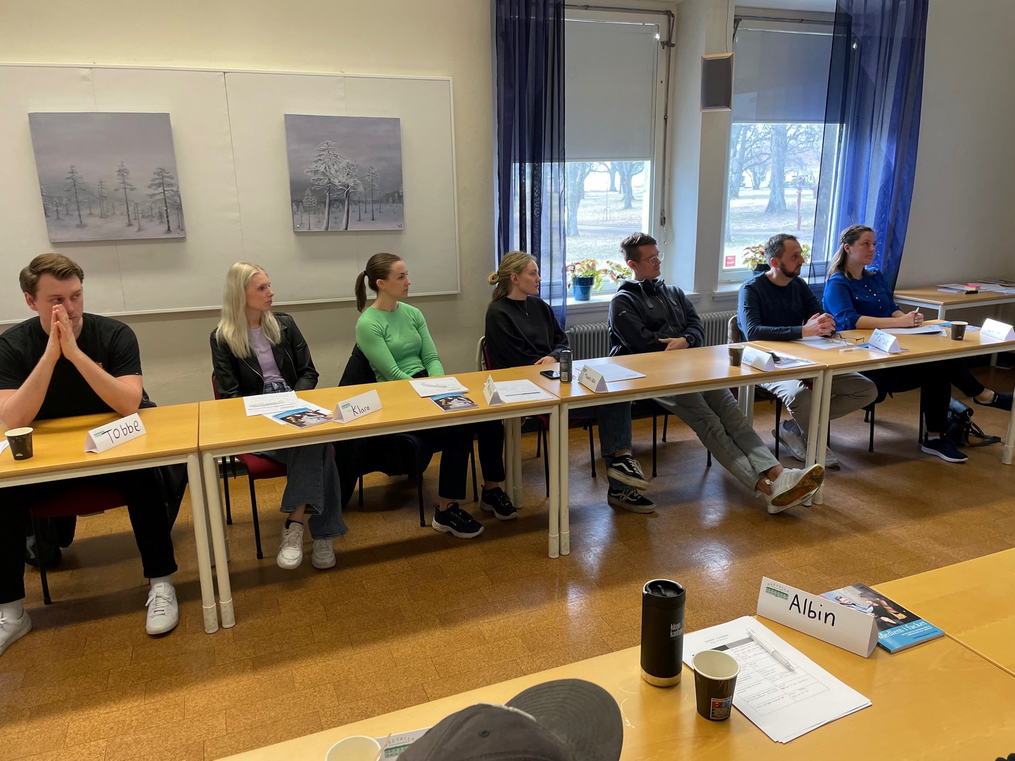 Ett ungt och glatt gäng med deltagare från både Västra och Östras avdelningar. Diskussionsbenägna och intresserade är dom.Antti Lindberg och Alfredsson som handledare men nu kör Shukrie försäkringsinfon. Med detta gäng så tror vi att det finns hopp för framtiden också...