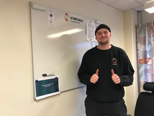 På bilden ser ni Simon Agartz vid anslagstavlan hos Kemetyl.