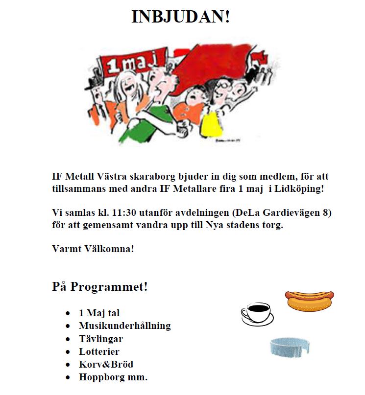 Välkommen att fira 1 maj tillsammans med IF Metall västra Skaraborg