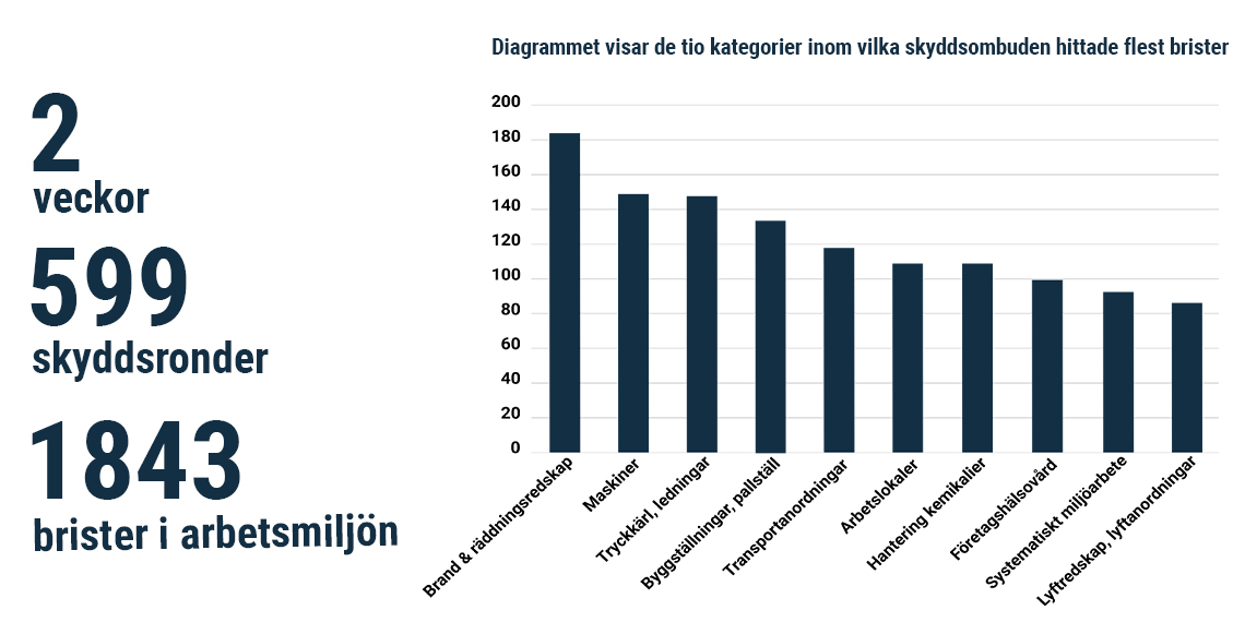 Under två veckor gjorde IF Metalls regionala skyddsombud 599 skyddsronder runt om i landet. Ronderna resulterad i drygt tre påpekanden per rond om risker och annat som måste åtgärdas för att säkra arbetsmiljön.