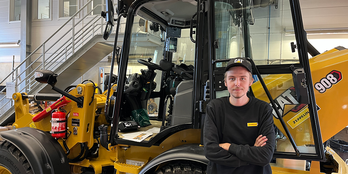– Jämtlands gymnasium, fordonsgymnasiet, motorbranschcollege. Man väljer fordon som program, sedan en inriktning i slutet av ettan. Då valde jag lastbil och mobila maskiner. Väl där på den linjen så blev det av en slump att jag hamnade på maskiner.