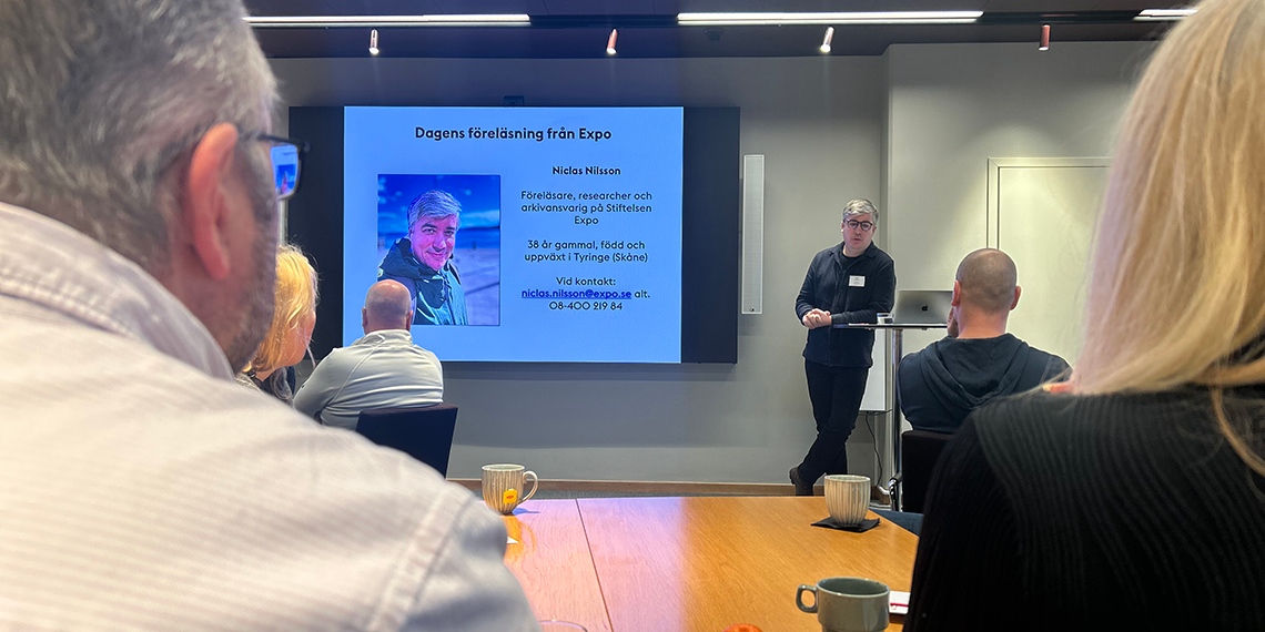 Niclas Nilsson från Stiftelsen Expo visade hur ytterhögerns inflytande påverkar hela samhällsdebatten.