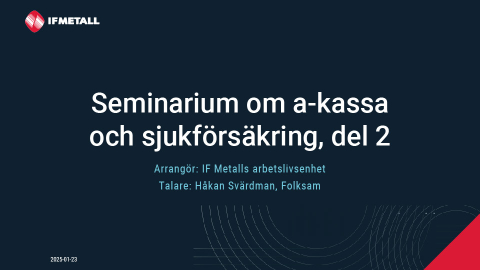 Den 23 januari arrangerade IF Metalls arbetslivsenhet ett välbesökt digitalt seminarium med Folksams expert Håkan Svärdman. Han gick igenom hur svensk a-kassa och sjukförsäkring startade och hur dessa institutioner utvecklats och fungerat fram till nu.