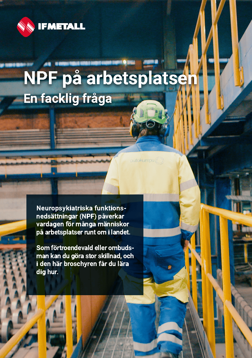 Innehållet på den här sidan är baserat på broschyren "NPF på arbetsplatsen – en facklig fråga". Ladda ner broschyren och/eller sprid den vidare. Broschyren kan även beställas från IF Metalls webbshop.