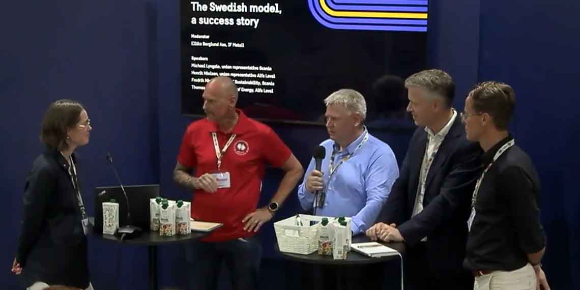 IF Metalls förbundsordförande Marie Nilsson medverkade också i ett samtal med Scanias hållbarhetschef Andreas Follér, samt Karl-Petter Thorwaldsson, tidigare näringsminister och LO-ordförande om hur fack, företag och politik kan samverka i klimatomställningen.
