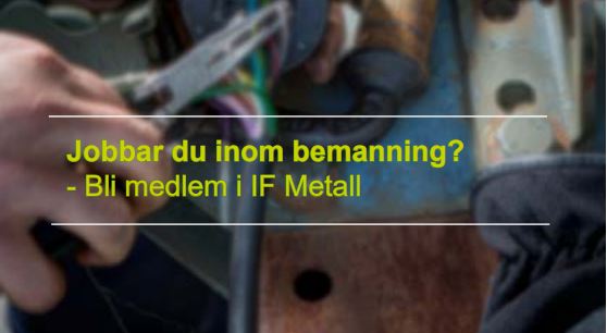 Du som jobbar inom bemanning är varmt välkommen till fackförbundet IF Metall. Som medlem i IF Metall får du bland annat schyssta villkor, försäkrad på både jobb och fritid, en säker arbetsmiljö och mycket mer.
