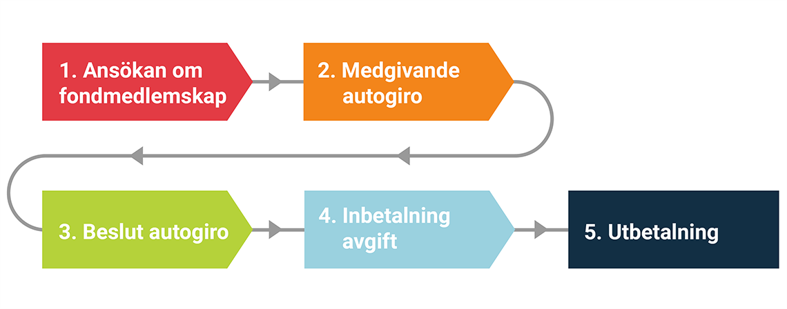 Medlemmen får ett erbjudande om att ansöka om fortsatt medlemskap tillsammans med en blankett för att betala avgift för fondmedlemskapet via autogiro. När medlemmen svarar att hen vill kvarstå som medlem i fonden, noteras det i IT-systemet.