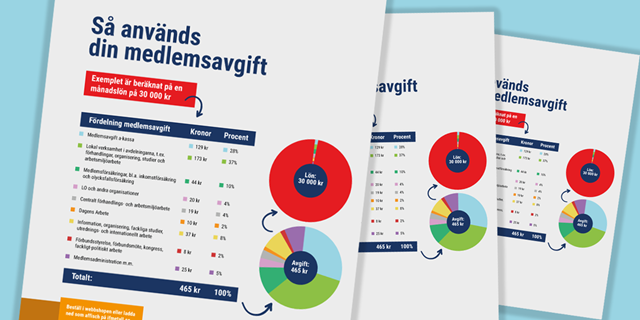 Affischen visar hur den fackliga medlemsavgiften fördelas över olika områden – vad man får som medlem i facket. Den finns även i webbshopen med artikelnummer OF-202. Sprid den gärna till medlemmarna.