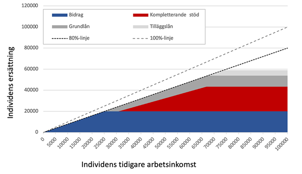 - Studera heltid i upp till ett år och få 80 procent av inkomsten upp till 30.600 kronor.