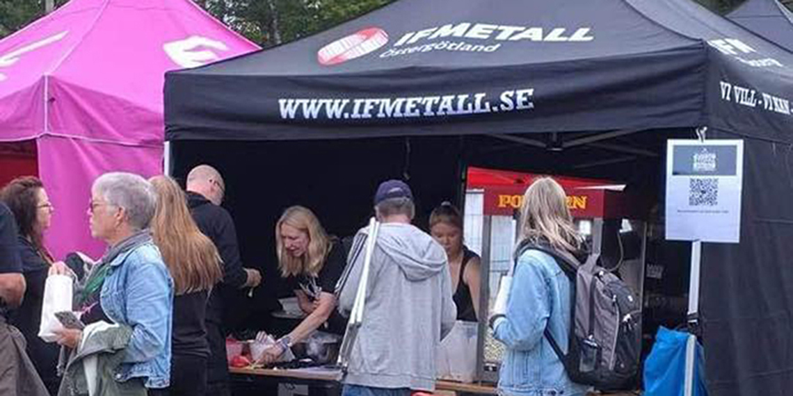Regnväder och dålig mobiltäckning stoppade inte IF Metall Östergötland från att delta på festivalen Skogsröjet och prata om facket och samtidigt ordna namnunderskrifter till Stoppa mäns våld mot kvinnor.